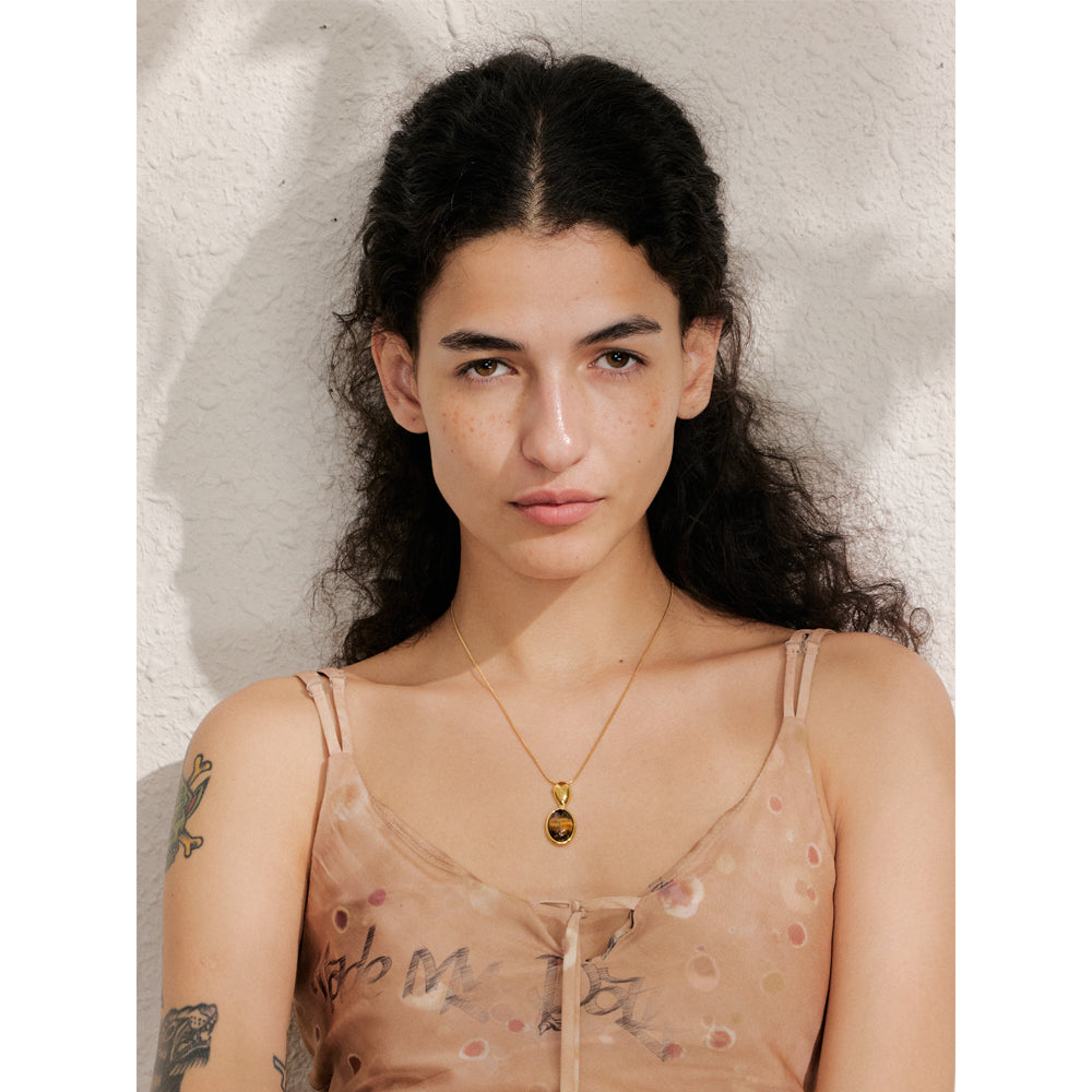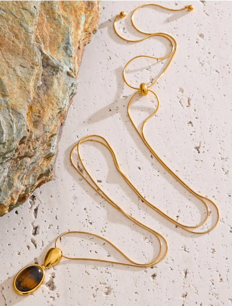 Tiger's eye charm pendant necklace. Available in gold or silver.