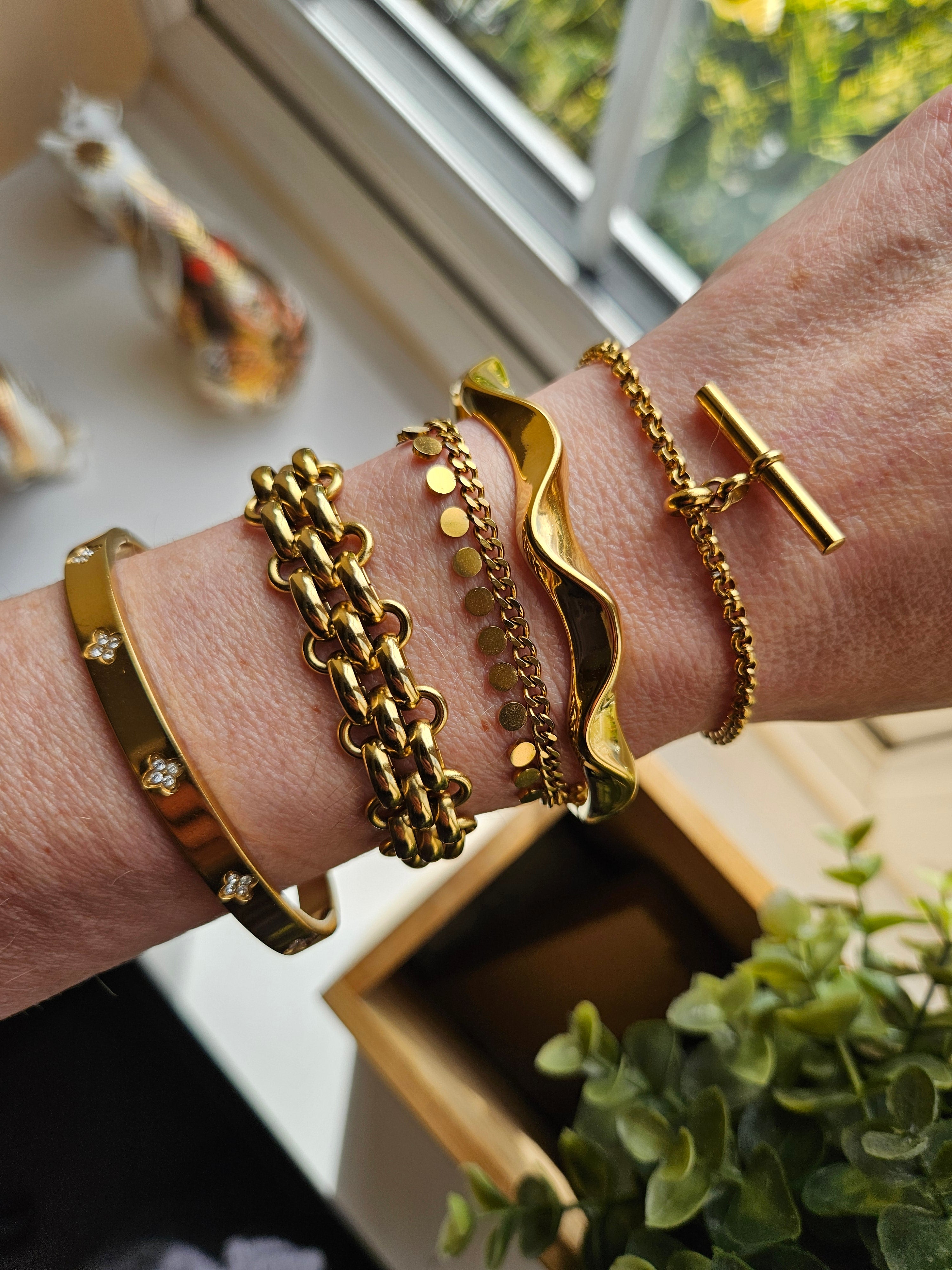 Crafted from premium 316L stainless steel with triple-layer 18k gold plating and durable PVD coating.